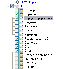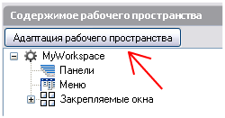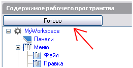 В панели "Содержимое рабочего пространства" выбранные элементы добавляются в рабочее пространство.